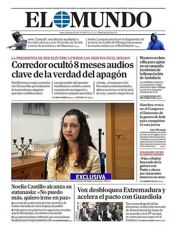 Portada de EL MUNDO del jueves 26 de marzo de 2026. Disponible en Orbyt desde las 23.30h. y cada día en tu quiosco, la mejor información siempre ...